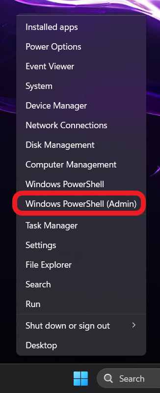 1) Nhấp chuột phải vào menu bắt đầu của Windows và chọn PowerShell hoặc Terminal (Không phải CMD).